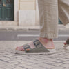 Unsere Innensohle ist mit echtem Kork beschichtet – einem nachhaltigen Naturmaterial, das nicht nur angenehm leicht, sondern auch atmungsaktiv und temperaturausgleichend ist. Kork passt sich sanft deinem Fuß an und unterstützt ein gesundes, trockenes Fußklima – selbst bei längerem Tragen.